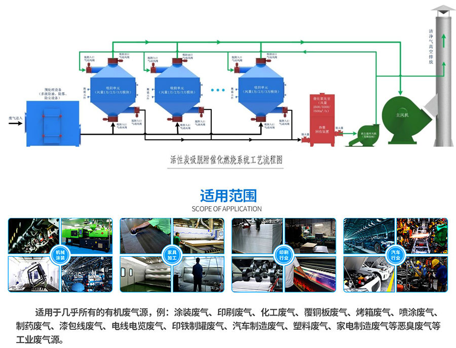 不同的排放場合和不同的廢氣,有不同的工藝流程。但不論采取哪種工藝流程,都由如下工藝單元組成。